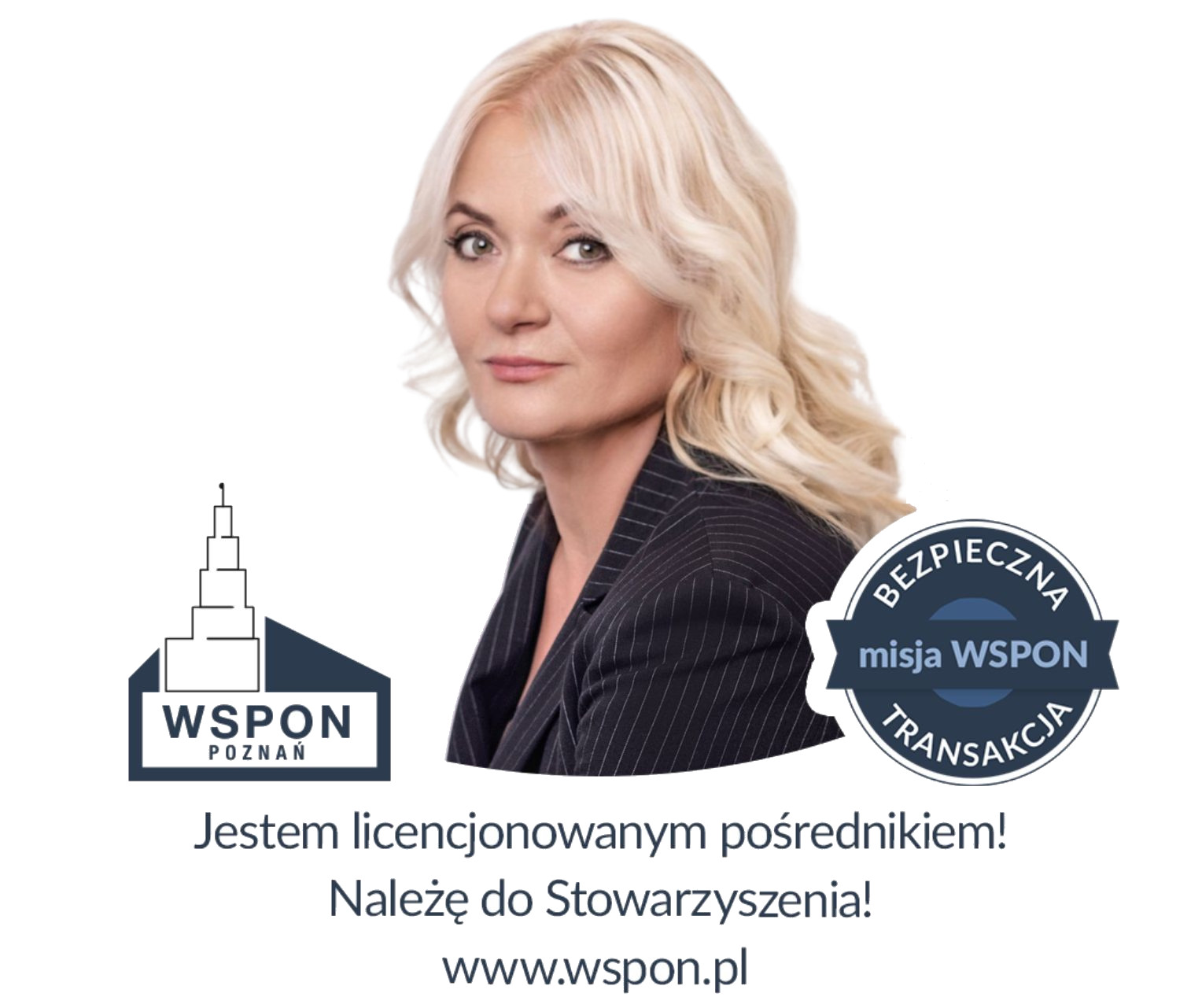 Zawsze pracuję z entuzjazmem i kieruję się przede wszystkim korzyścią klienta. Posiadam licencję zawodową nr 12 225 oraz ubezpieczenie od odpowiedzialności cywilnej. Jestem członkiem WSPON – Wielkopolskiego Stowarzyszenia Pośredników w Obrocie Nieruchomościami oraz PFRN – Polskiej Federacji Rynku Nieruchomości, co potwierdza moje zaangażowanie w wysokie standardy pracy i etykę zawodową.